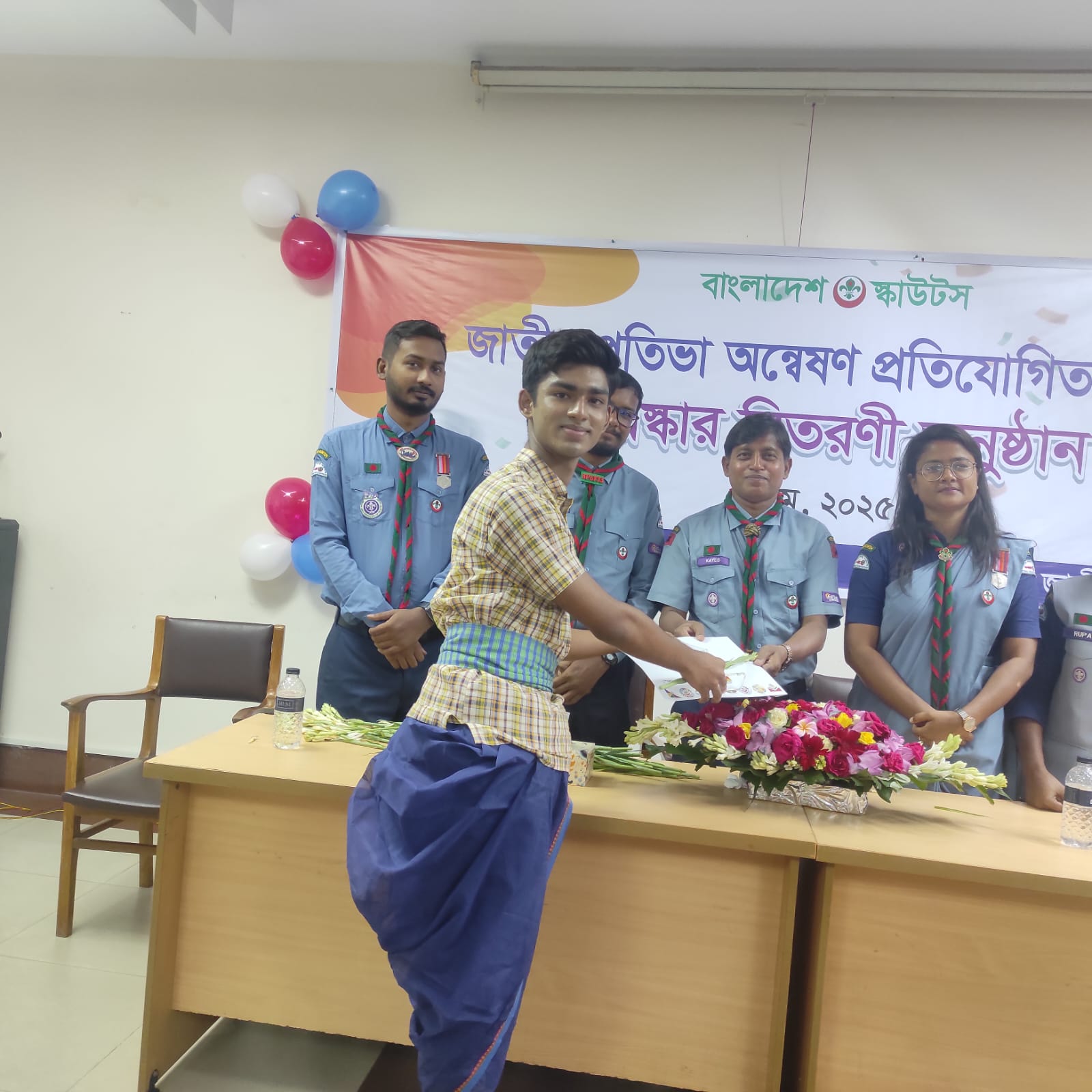 জাতীয় প্রতিভা অন্বেষণ প্রতিযোগিতা-2024 এর নৃত্যে খ বিভাগে জাতীয় পর্যায়ে দ্বিতীয় স্থান অর্জন করেছে অষ্টম শ্রেণির ছাত্র আব্দুল্লাহ আরিফ সিয়াম।