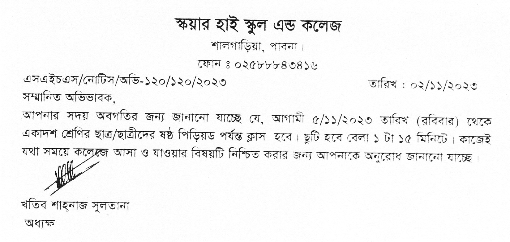 | দ্বাদশ শ্রেণির অভিভাবক সভা | View |
